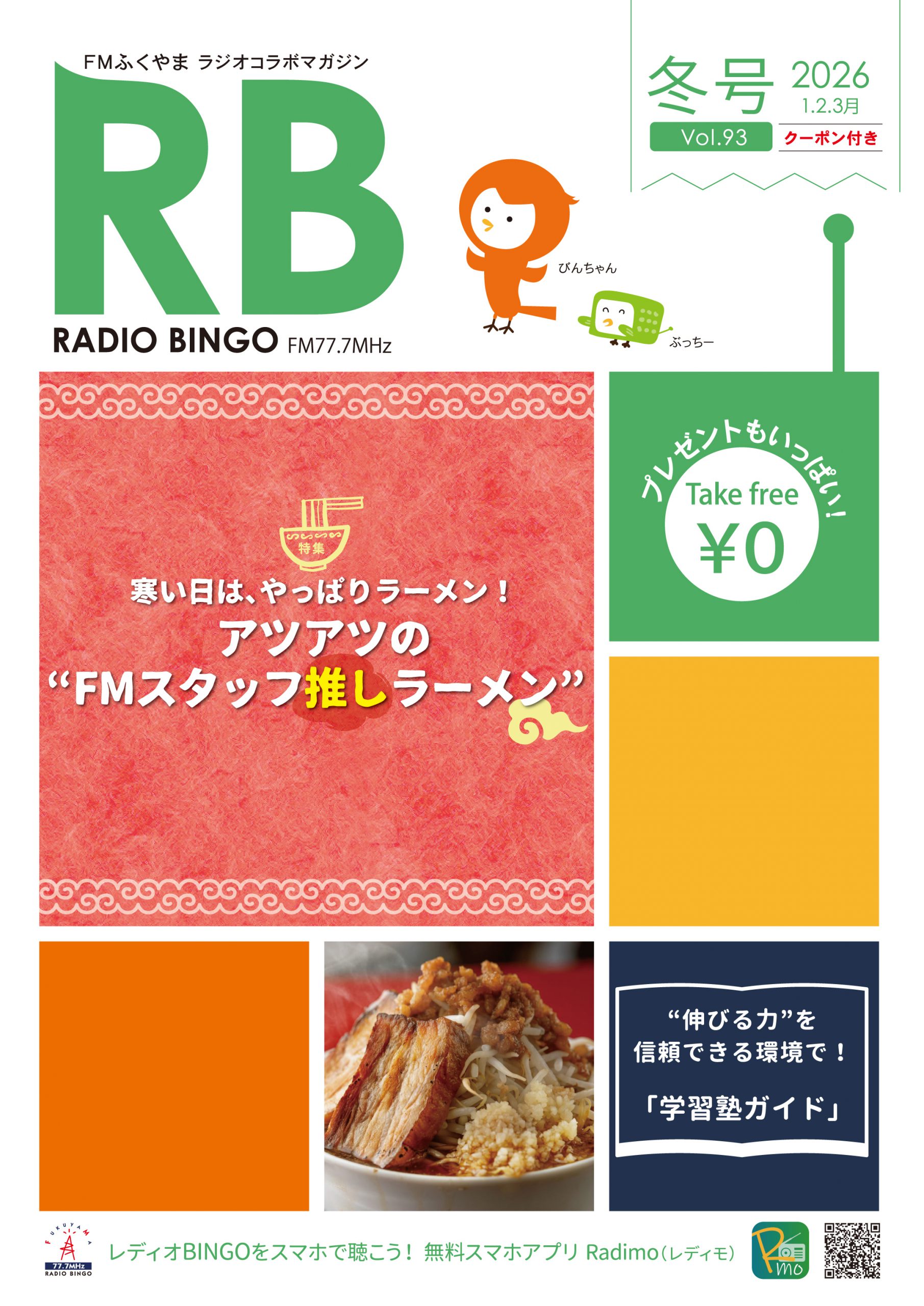 金 19:00~19:15福山シティFCの新着情報・リアル高校生の声・リレー形式でお店や会社の紹介など、いろんな角度から福山を紹介する番組!きっと地元が大好きになる!! -