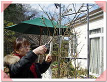 到着した時、剪定はほぼ終わっており勉強のため私たちに何本か残しておいてくれたのでした(汗)。
