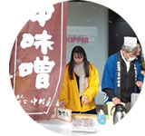 あれ・・・この人も応援に!? 林家正蔵さん!?ではなく、止蔵さんのほうでした(#^.^#) 金曜日の朝の番組のパーソナリティ山下道隆さんも袴姿・・・止蔵姿でインターボイスを配りレディオBINGOのPR! この日は「府中味噌」味噌汁の振る舞いもあり、からだがシンからあったまりました。 (-^〇^-) みなさんのおかげで公開生放送も無事終了!