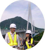 斜張橋の太いケーブルの表面にはゴルフボールにように凸凹が・・・。 雨が降り水滴が付き風が吹いた時の振動を防ぐためにあるらしい・・・。 大きくたるんでいるケーブルが何本も!! すごい迫力で感動しました!