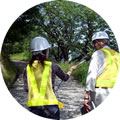 ヘルメットをかぶり、安全チョッキを着て憧れの塔頂へいざ出発!!